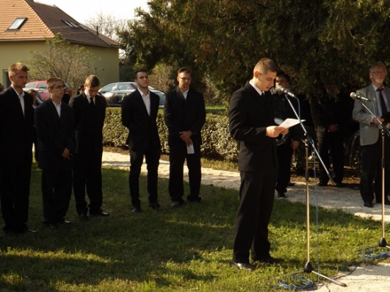 – Ne felejtsük el, bár többen közülük alig beszéltek magyarul, hazánk történelmének legnagyobb mártírjai közé kerültek. Példák arra, hogy magyarrá az embert nem a hitvallás, nem a szónoklás, hanem a tettek teszik, és még valami: a magyarsággal közös sors vállalása, legyen bár a neve valakinek Láhner György, Leiningen-Westerburg Károly, akik németek, vagy Damjanich János, aki szerb, Knézic Károly, aki horvát, vagy Kiss Ernő, aki örmény származású volt. S a többieket is idézhetném, a zseniális Aulich Lajost, aki magyarul csak pár szót tudott, de a tavaszi hadjáratban a lélektani hadviselést örökre megtanította a világnak. Ez a nemzet bebizonyította 1848-49-ben, a két világháború között és 1956-ban, hogy nem tűri szabadsága csorbítását – mondta ünnepi beszédében a Kultsár István Szakközépiskola igazgatója, Turi Bálint.
