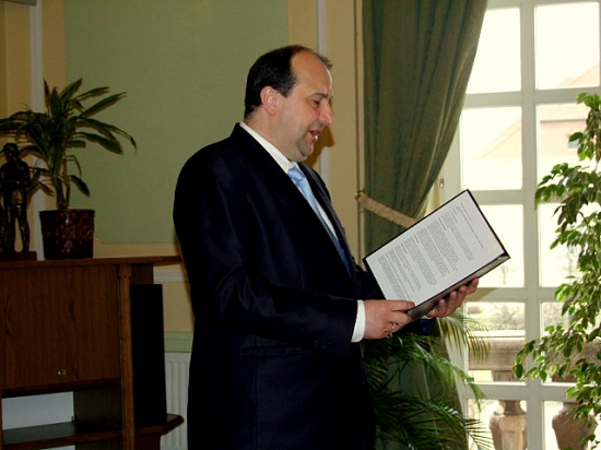 Az eseményen elsőként dr. Molnár Attila polgármester előtt tették le az esküt a pályakezdő óvónők, tanítók, tanárok és gyógypedagógusok, akik a 2014/15-ös tanévben kezdték meg a munkát városunk valamelyik tanintézményében. Névszerint Albert Józsefné, Balogh Tomas, Czitáné Bibók Melinda, Csatári Dóra, Lőrincz Gábor, Németh Józsefné, Szakács Roland és Tóthné Szabó Erika.