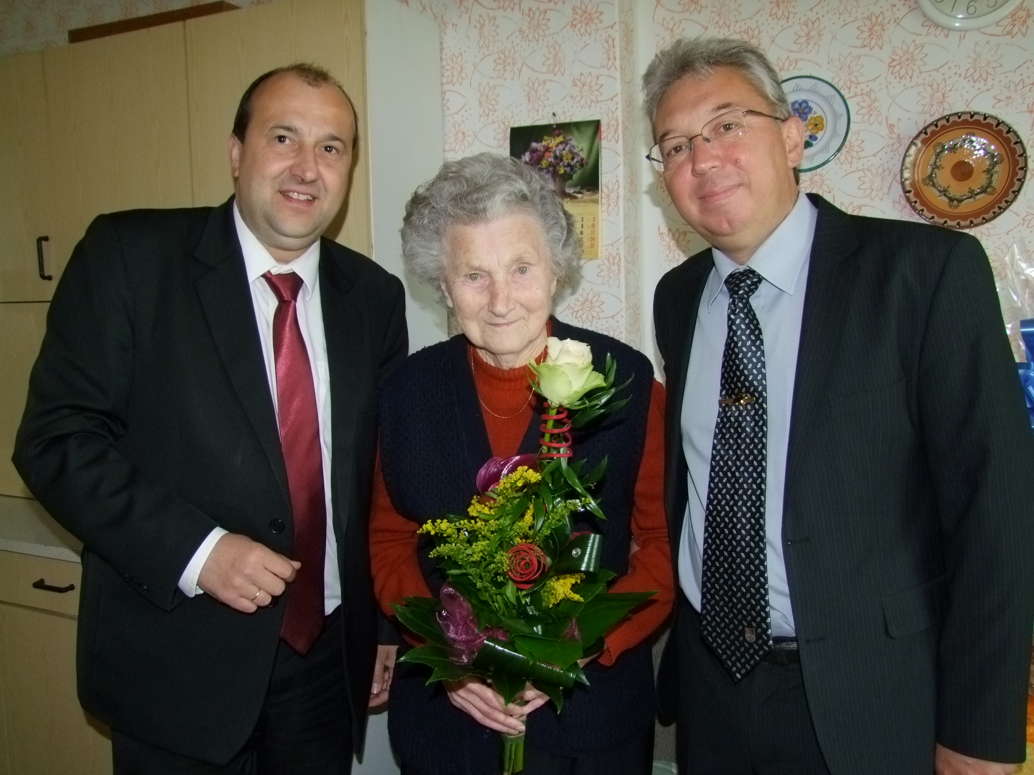 Pünkösd hétfőn ünnepelte 90. születésnapját Mátyus Kálmánné Eszti néni. A jeles évforduló kapcsán dr. Molnár Attila polgármester és Turi Bálint alpolgármester is köszöntötte városunk szépkorú lakóját.