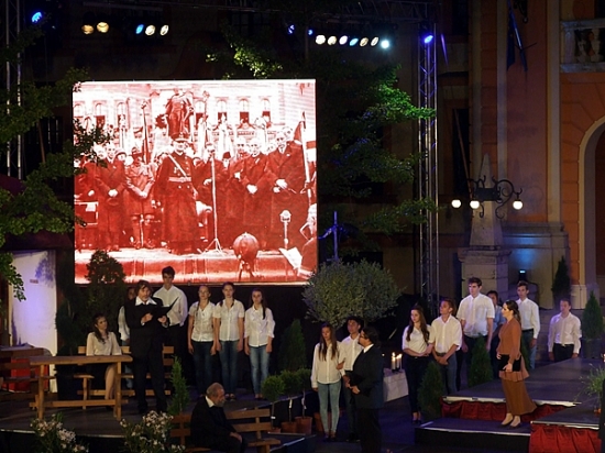 Június 4-én, a trianoni békediktátum aláírásának 95. évfordulóján, a nemzeti összetartozás napján mutatták be a Szabadság téren Koltay Gábor rendezésében a Testamentum című darabot. A zenés pódiumjátékon egykori polgármesterünk Alapy Gáspár életútját követhettük nyomon az 1920-as évektől 1944-ig. A premieren megjelent Észak- és Dél-Komárom vezetése, illetve Alapy Gáspár unokája és családja is.