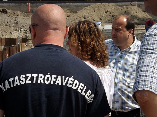A tegnapi napon bejárást tartott az épülő gátnál Molnárné dr. Taár Izabella a járási hivatal vezetője, dr. Molnár Attila polgármester, Czita János alpolgármester, Czomba Péter a katasztrófavédelem megyei igazgatója, és Molnár András vízügyi mérnök.