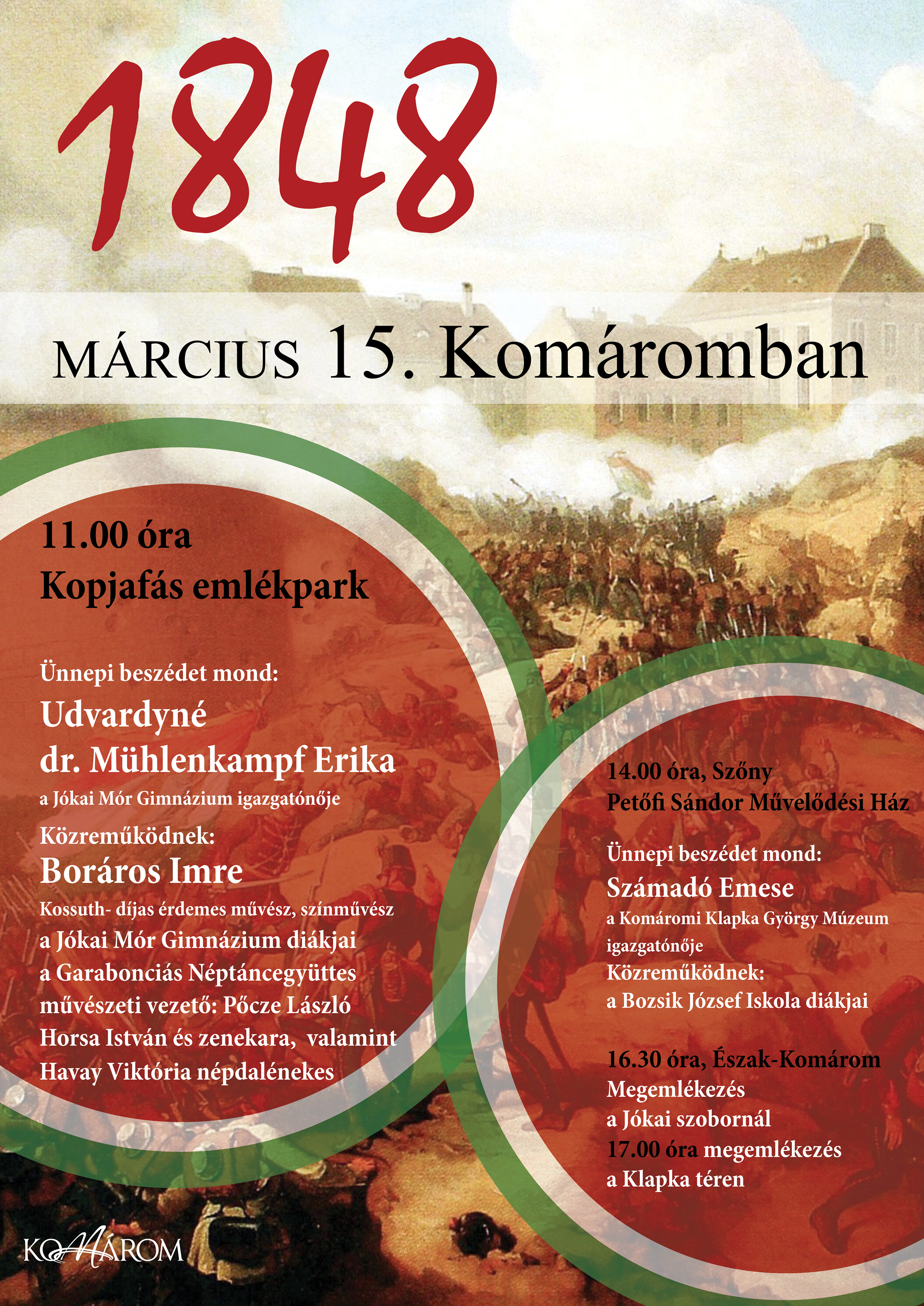 A hagyományokhoz híven idén is több helyszínen, több időpontban is megemlékezünk az 1848 / 49-es forradalom és szabadságharc hőseiről.