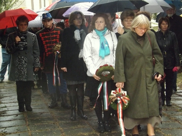 - Október 6-án egy gyenge hatalom példát akart statuálni a jogtalan kivégzésekkel. De, hogy Márai Sándor szavait idézzem: mindig új élet lesz a vérből. Pár évtizeddel később a Habsburg álom véget ért. A Birodalom Magyarország nélkül nem létezhetett tovább. Vér árán, de megvalósult a polgári Magyarország! Nem ajándékba kaptuk, el kellett siratni érte a halottakat. 1848 és 1956 hőseinek köszönhetjük, hogy nekünk már nem kell forradalmat vívunk, nem kell meghalnunk a nemzet ügyéért. Viszont tennünk most is kell érte, például azzal, hogy nemzeti kérdésekben egységben hallatjuk a hangunkat. A forradalmak, szabadságharcok idején bővében voltunk a magyarságnak, ma ennek híján vagyunk - hangzottak Oláh Kálmán szavai.