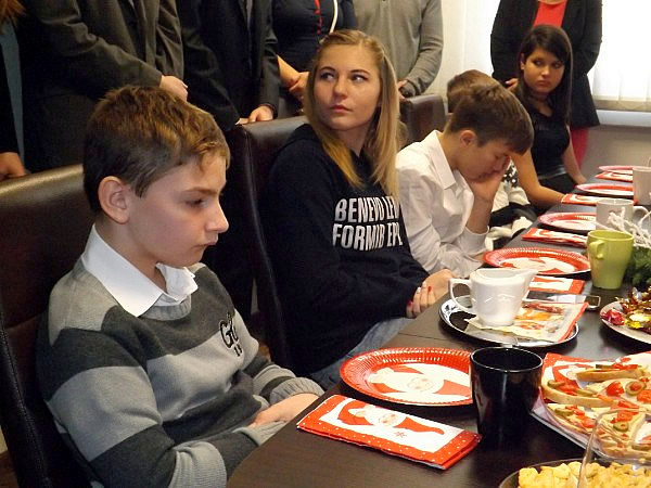 A szeretet szobája. Ezt a nevet is adhatjuk a Ho-Máhr Trans egyik helyiségének, ahol a terített asztalok mellé ültek le a megye több településéről – Tarján, Tata, Tatabánya, Oroszlány, Ács, Koppánymonostor – érkezett gyerekek. A Szent Ágota Gyermekvédelmi Szolgálat lakóotthonaiban töltik mindennapjaikat, és most, társaik nevében is, ünnepelni jöttek. Körülöttük meghatódott és mosolygó felnőttek álltak. A Segítő Jóbarátok – dr. Farkas Károly, dr. Dombi Péter, Honosiné Máhr Ágnes és Honosi Mihály – valamint számos megyei cég, szervezet, intézmény képviselője.