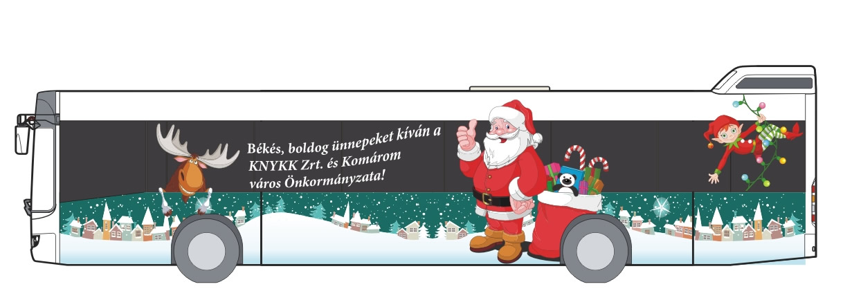 Ajándékkal szeretne kedveskedni a komáromiaknak a helyi közlekedésért felelős Középnyugat-magyarországi Közlekedési Központ Zrt. (KNYKK) vezetése. A cég idén arról döntött, hogy az év végi képeslapok, üdvözlőkártyák helyett az autóbuszokon továbbítja ünnepi jókívánságait.