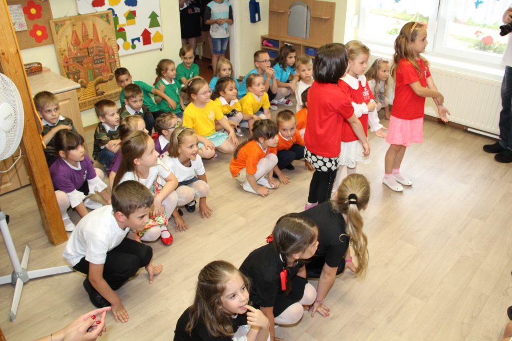 A délelőtt a gyerekek csoportjainkban játékos feladatokkal szórakoztatták az óvónőket és dajkákat, akiktől cserébe ajándék kitűzőt kaptak, valamint egy színes születésnapi tortát is.