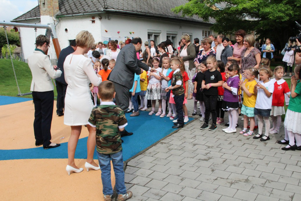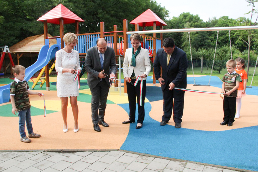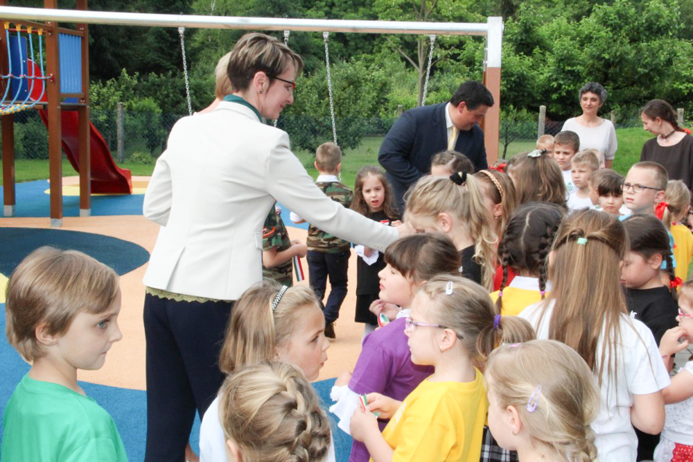 Az ünnepség után Czunyiné dr. Bertalan Judit a térség országgyűlési képviselője, dr. Molnár Attila polgármester, rd. Kreft-Horváth Loránd alpolgármester és Győrffy Tünde óvodavezető adta át a gyerekeknek a Színes Óvoda önkormányzati támogatásból felújított játszóterét.
