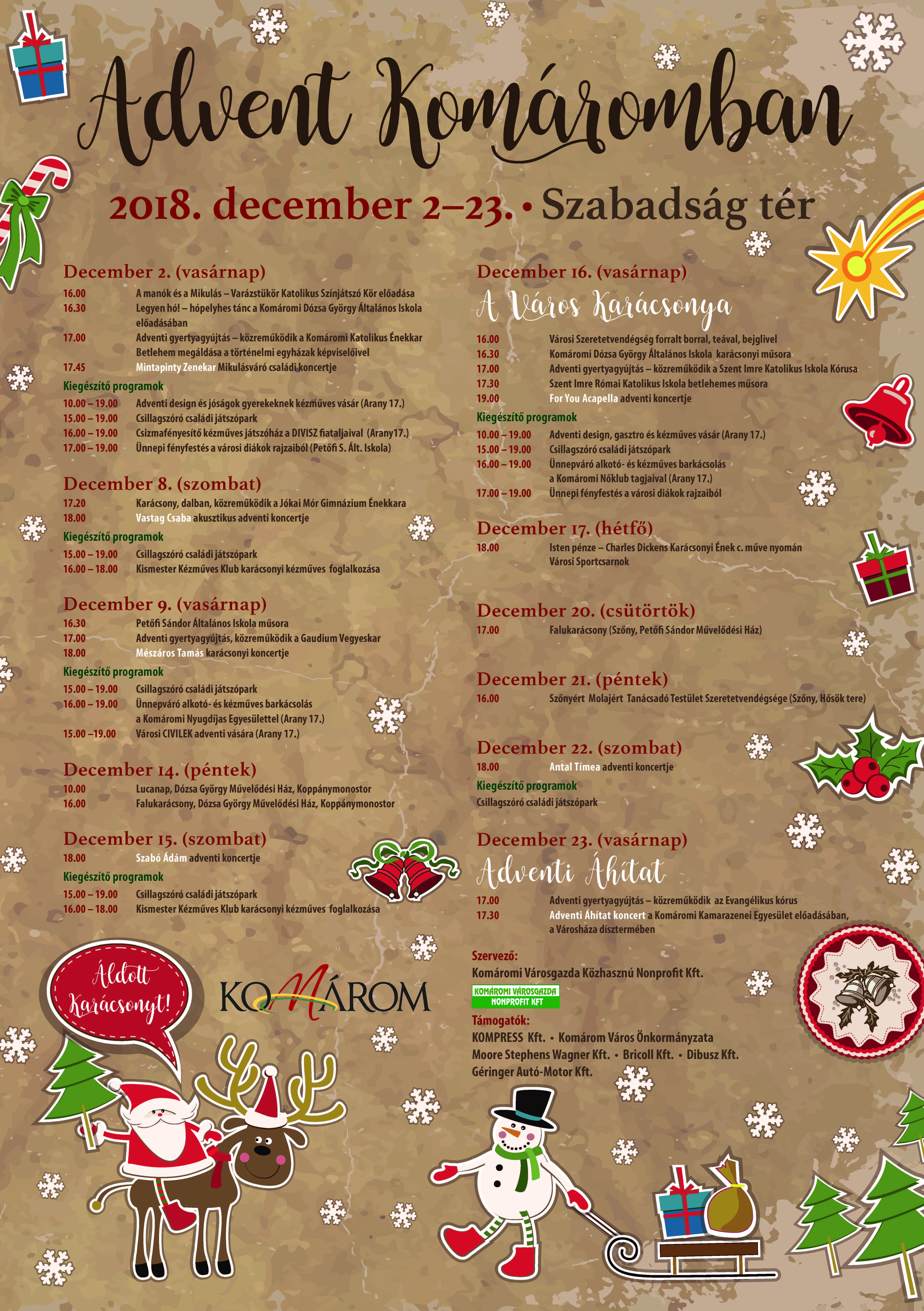 A Szabadság téren rendezett karácsonyváró programsorozat december 2-tól december 23-ig várta az érdeklődőket. A