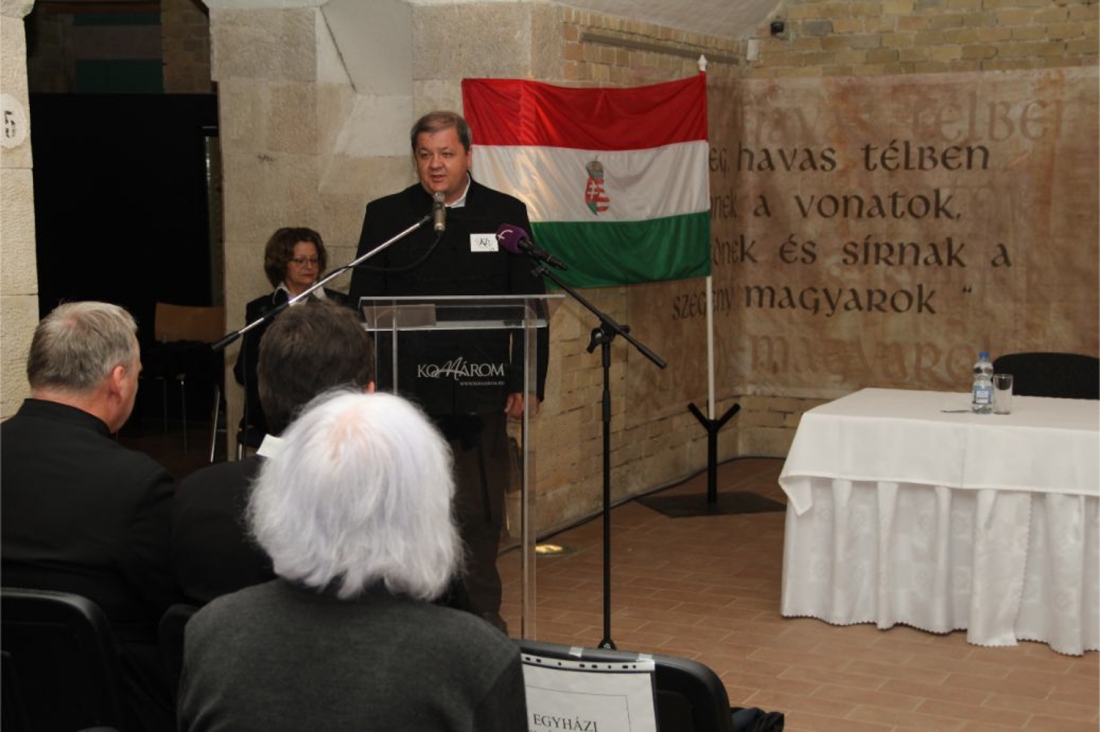 A koszorúzással kezdődött múltidézés a Klapka terem falai közt folytatódott. Dr. Molnár Attila polgármester köszöntőjében kiemelte: a megélt sorsokon változtatni nem tudunk, de emlékezni és emlékeztetni nemcsak kötelességünk, de felelősségünk is.