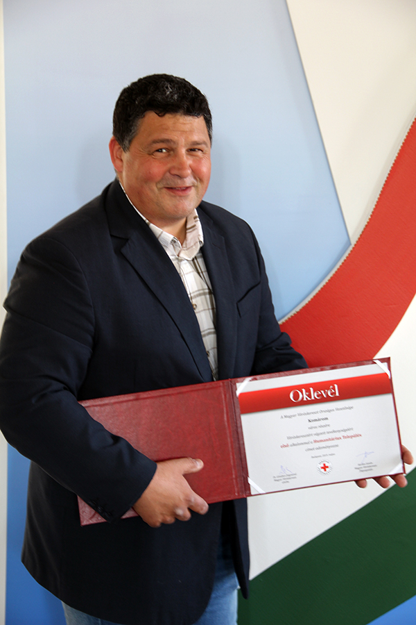 A megtisztelőt címet a Magyar Vöröskereszt országos vezetősége nemrég Komáromnak adományozta. Dr. Kreft-Horváth Loránd alpolgármester elmondta, nekünk komáromiaknak példamutató a közösségépítő erőnk, így látta ezt az országos szervezet Mozgalmi és Ifjúsági Munkabizottsága is, amely szerint tartalmas humanitárius munka folyik városunkban.