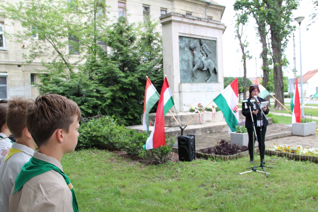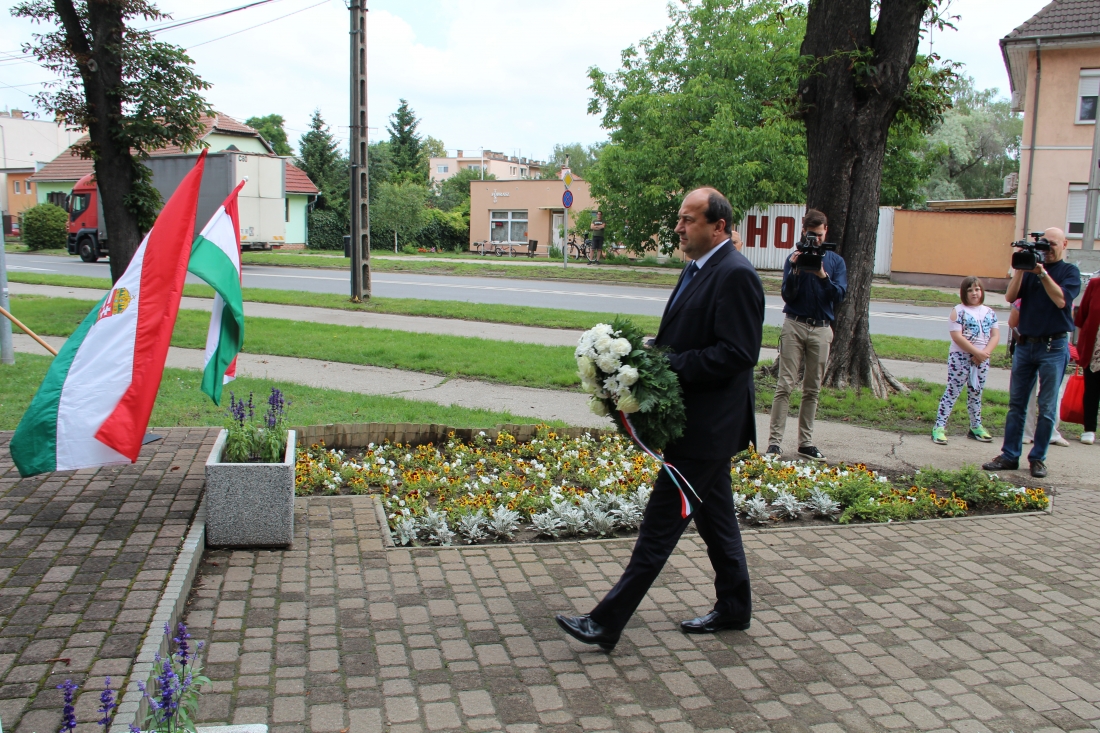 A megemlékezőket Hajnal Dóra önkormányzati képviselő, a Humán bizottság elnöke köszöntötte. Az eseményen, a szobor talapzatánál dr. Molnár Attila polgármester, Molnárné dr. Taár Izabella a Járási Hivatal vezetője, Turi Bálint alpolgármester és Szabó István önkormányzati képviselő koszorúzott.