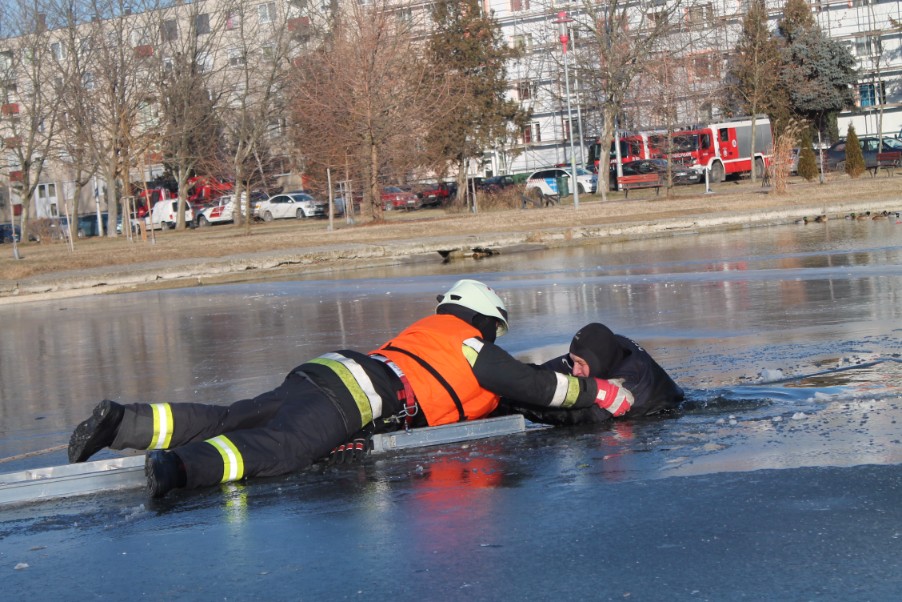 Mentési gyakorlat a Rüdiger tavon
